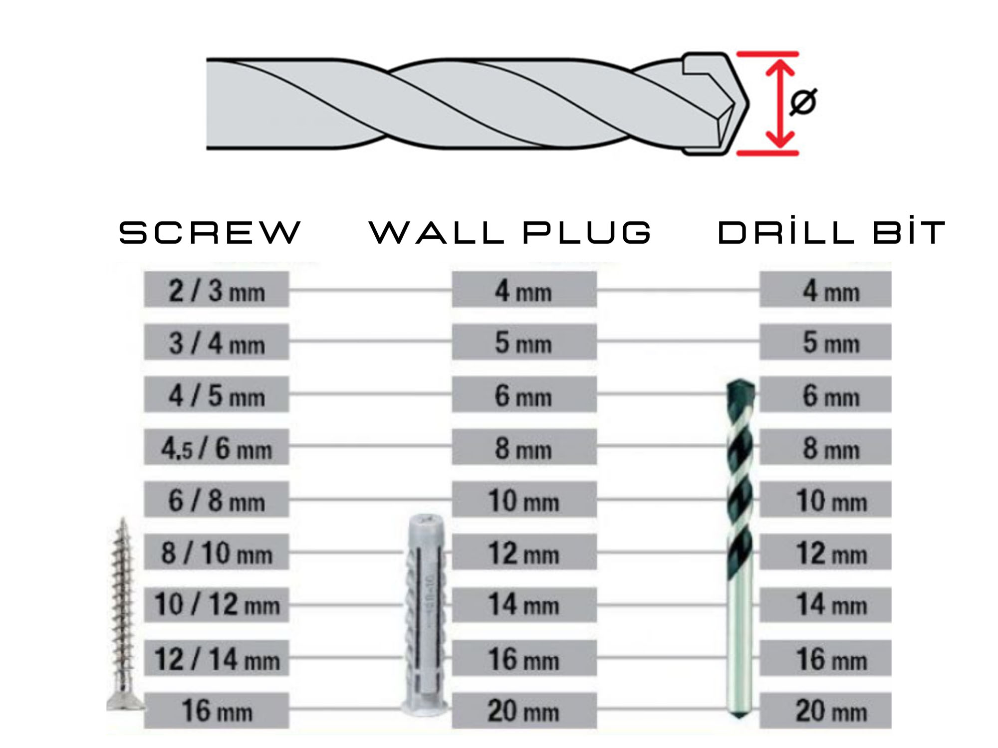 Firstly, the size of the screw to be used is determined. Then, the appropriate anchor size for the screw is selected. Afterwards, a drill bit is chosen that matches the size of the selected anchor. Once you have determined exactly where you want to hang your product, you can proceed with the drilling process.
